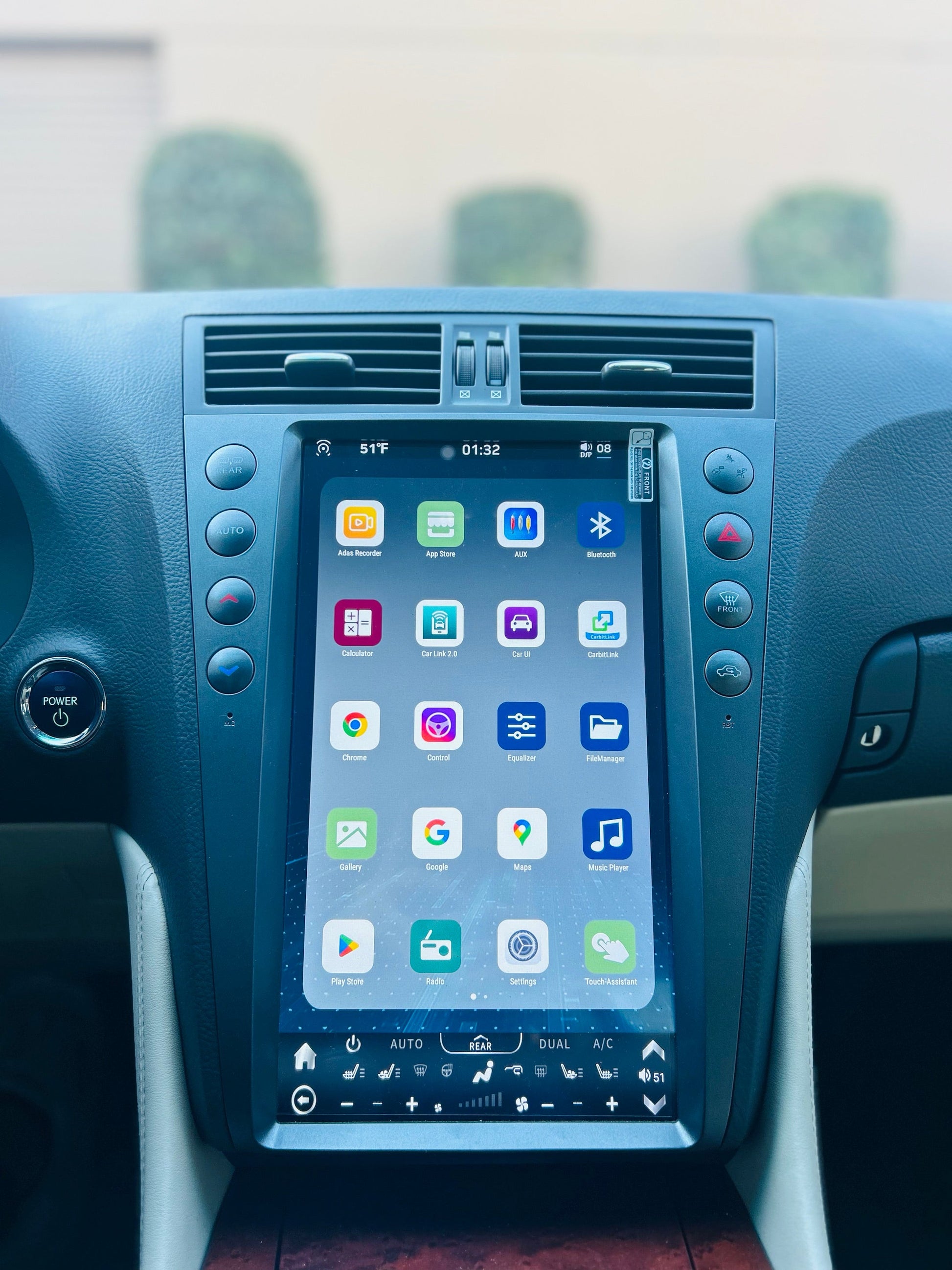 - Physical buttons available for easier AC or media control customizable.